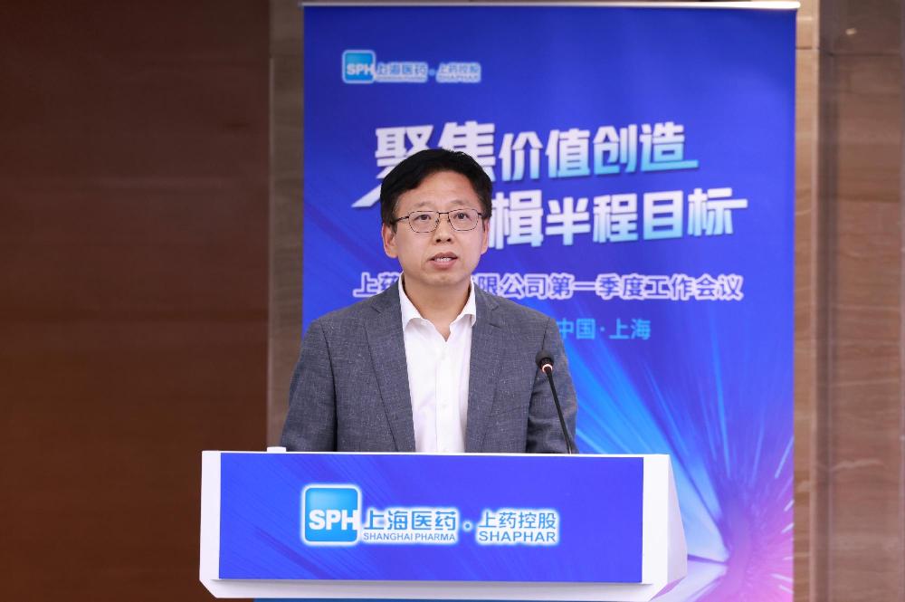 上藥控股戰(zhàn)略創(chuàng)新部總經(jīng)理黃文爭(zhēng)作《一季度重點(diǎn)工作進(jìn)展》報(bào)告